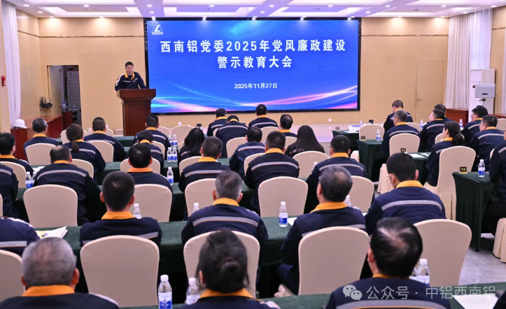 为全面贯彻党的二十大和二十届历次全会精神,深入落实二十届中央纪委四次全会精神,推动公司党风廉政建设工作再上新台阶,11月27日,西南铝党委召开了2025年党风廉政建设警示教育大会。