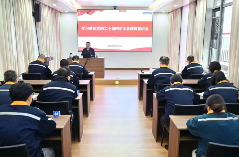 12月18日,中铝高端党委副书记、总经理王建国到西南铝作学习宣传贯彻党的二十届四中全会精神宣讲报告。